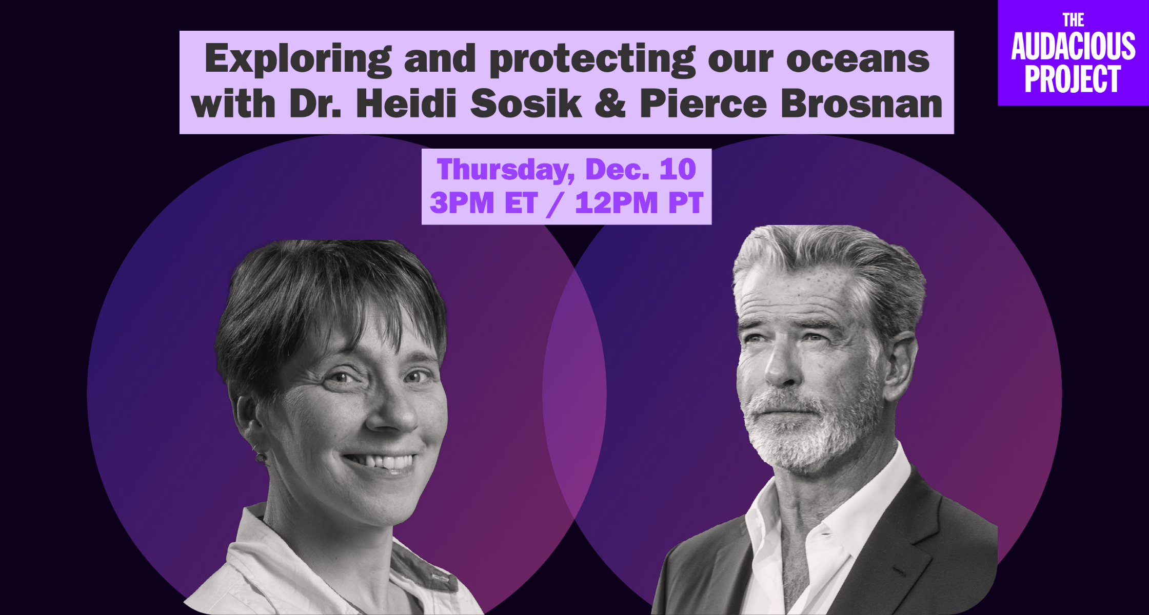 The idea is to bring together a change-maker/ activist and an influencer with a passion for a particular social issue to discuss innovative ideas and strategies to address it. Our first one was a climate conversation featuring James Bond star Pierce Brosnan and Audacious Project leader Dr. Heidi Sosik of the Woods Hole Oceanographic Institution.