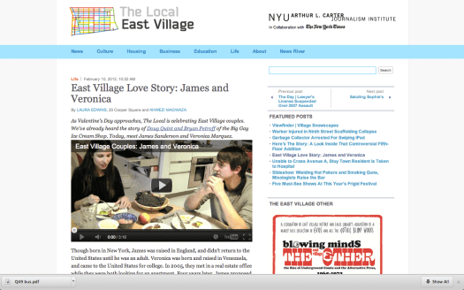 So our final video pieces for our semester 1 writing and reporting class had to be about couples in the east village… of course my partner Laura and I found the cutest most adorable couple ever!